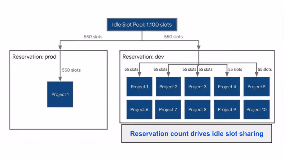 The quintessential corporate "sweet spot.” It includes Idle Slot Sharing, allowing unused capacity to be borrowed by other workloads within the same organization, and BI Engine acceleration. - Enterprise Plus: