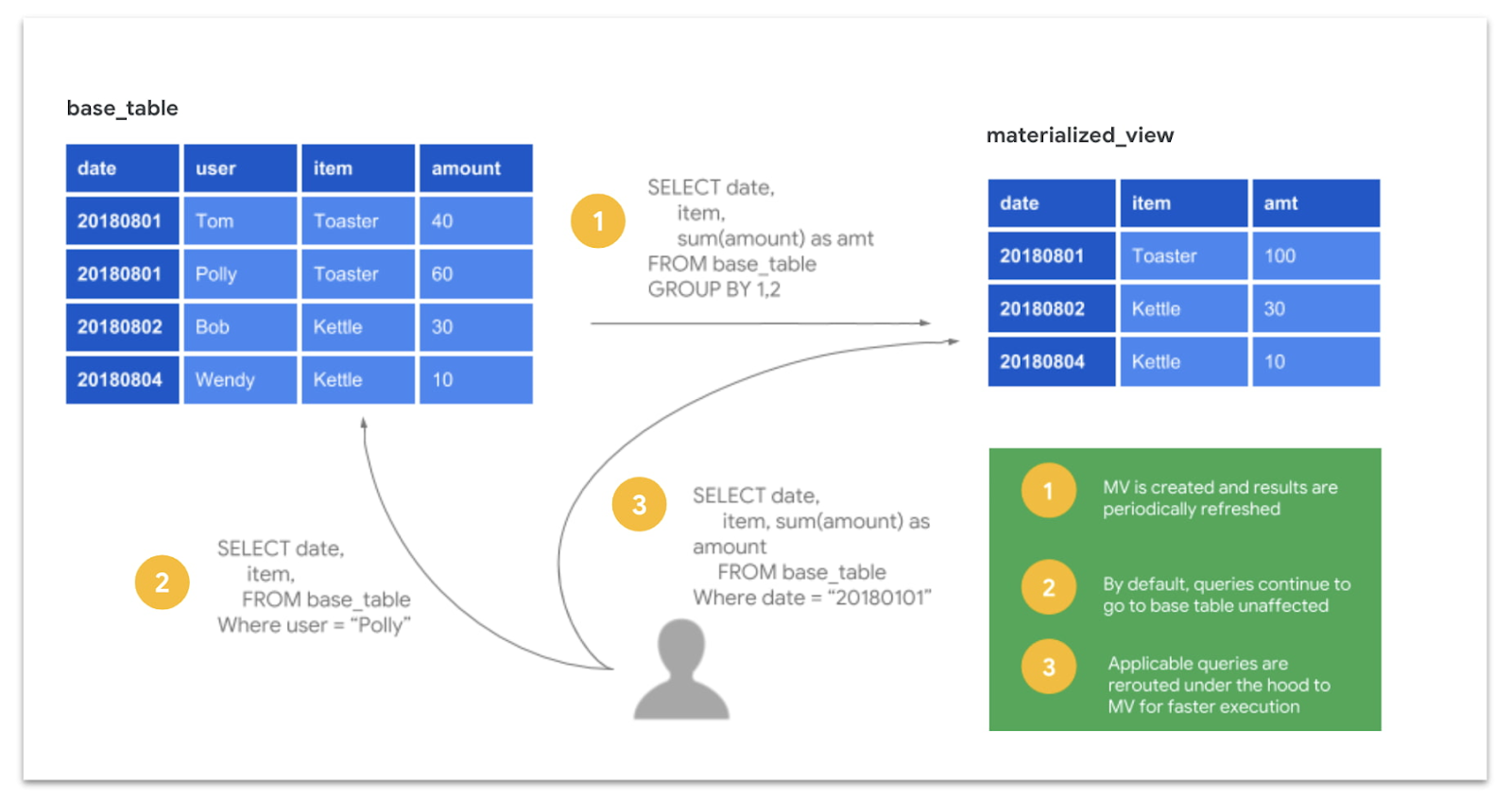 - Efficiency: Querying a smaller, pre-aggregated result set downstream is significantly cheaper and faster than re-scanning terabytes of raw source data every time.