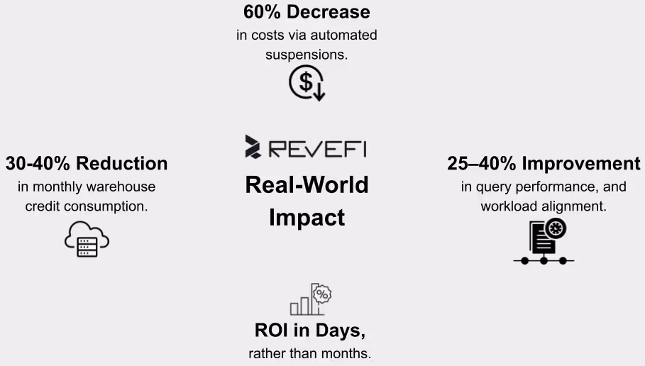 This adaptive approach ensures sustained savings, even as workloads and data volumes evolve. Revefi’s AI Agent for Data Spend Optimization addresses this challenge by combining AI, machine learning, real-time monitoring, and automated optimizations to minimize spend while maintaining or improving query performance.