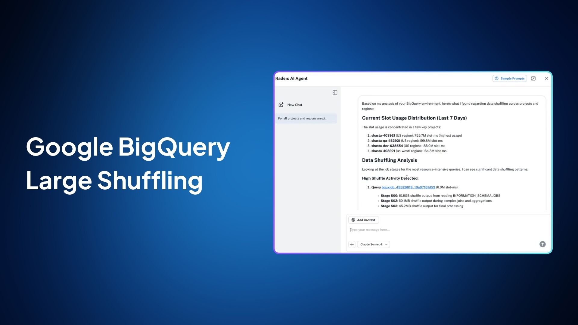- Detect high-shuffle pipelines across key projects and jobs by analyzing slot usage, activity levels, and shuffle-heavy stages