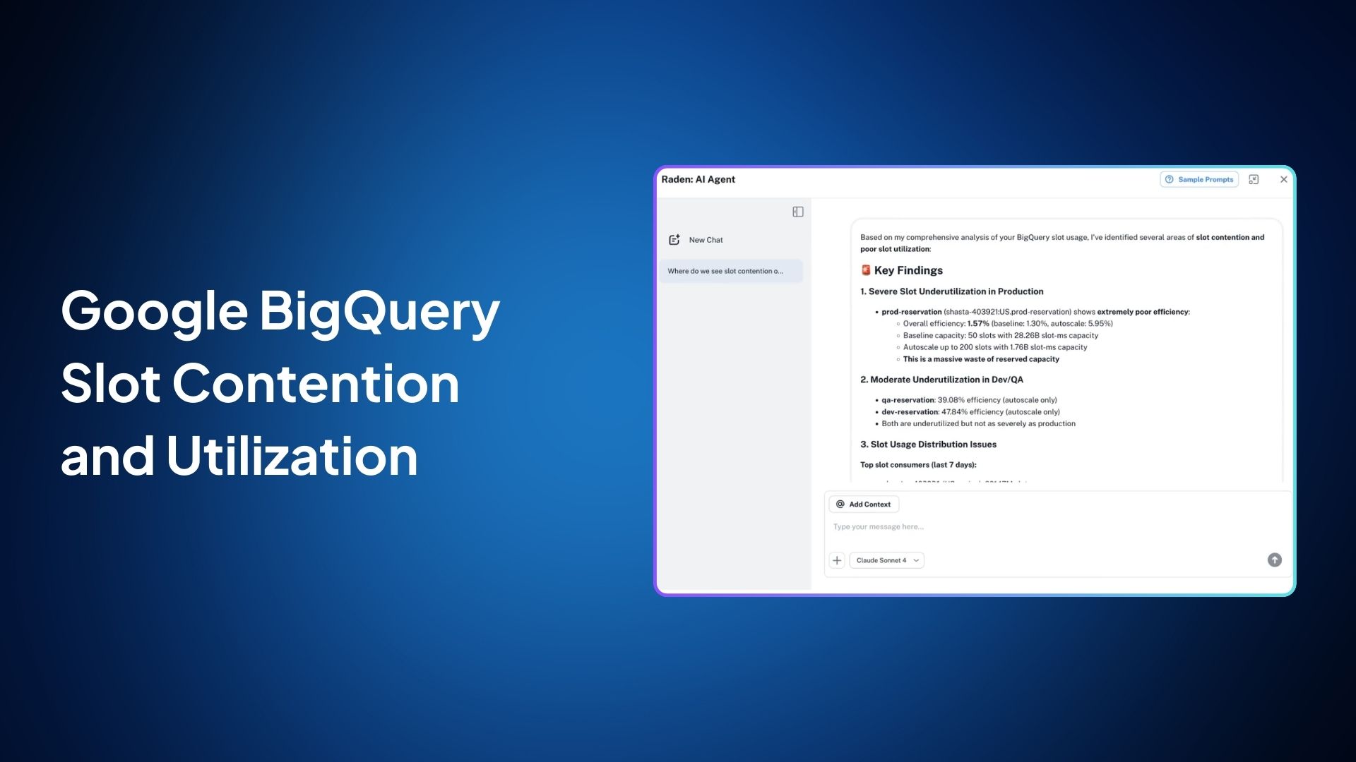 Take control of your BigQuery performance and efficiency today with Revefi’s AI Agent! Watch this short video to see how Revefi’s AI Agent, RADEN, identifies slot contention and poor slot utilization—issues that lead to slow queries, delayed pipelines, and higher costs across your BigQuery environment.